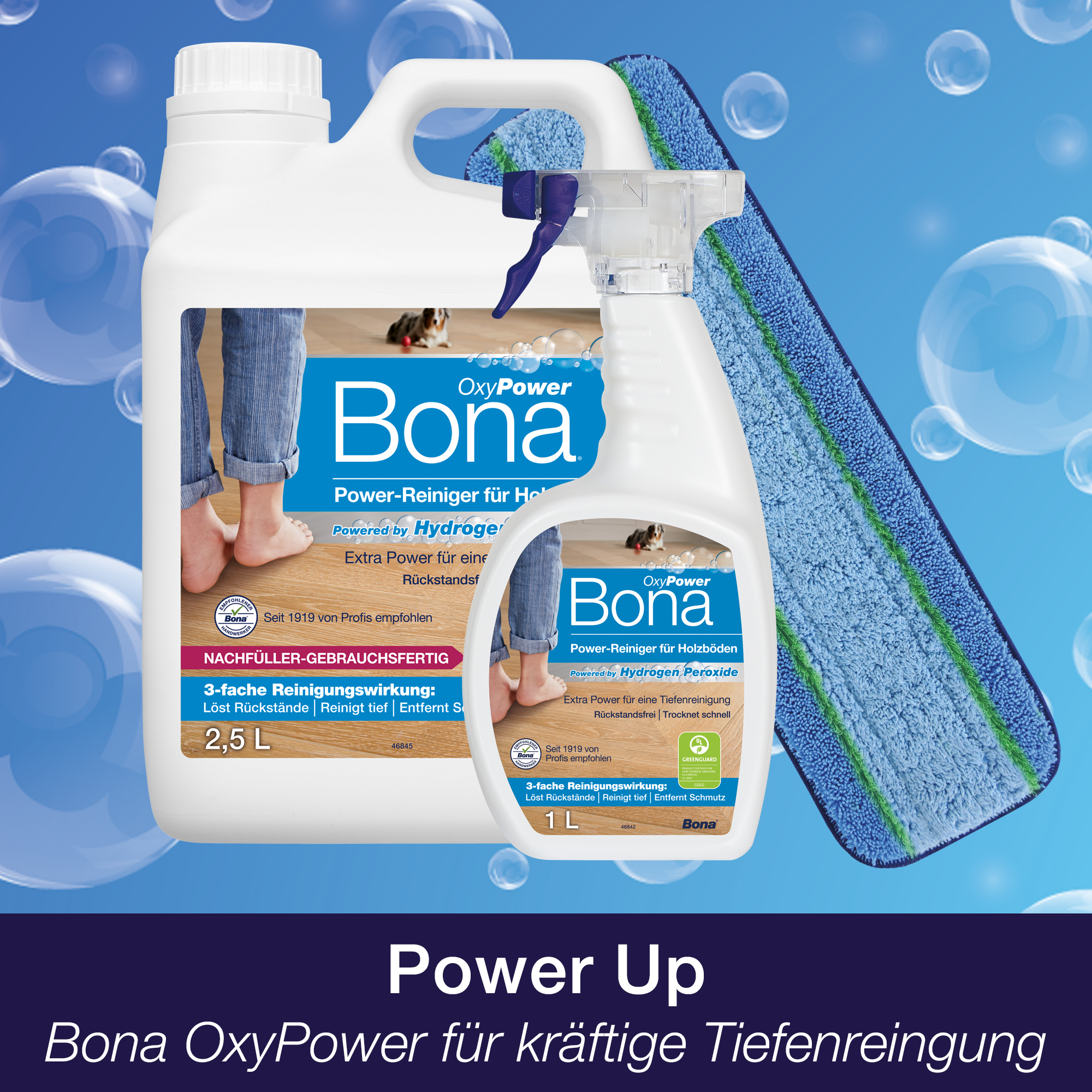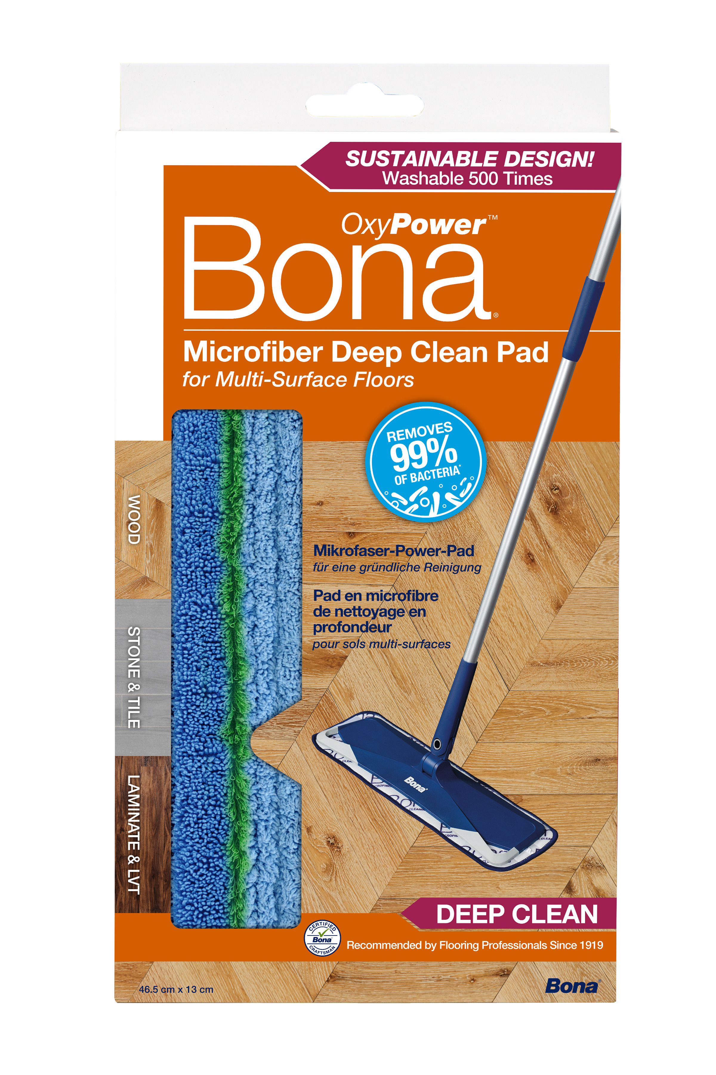 Das Bona Mikrofaser Deep Clean Pad mit PowerLoop®-Technologie löst und entfernt starke Verschmutzungen. Für beste Ergebnisse mit dem Bona OxyPower-Reinger verwenden.