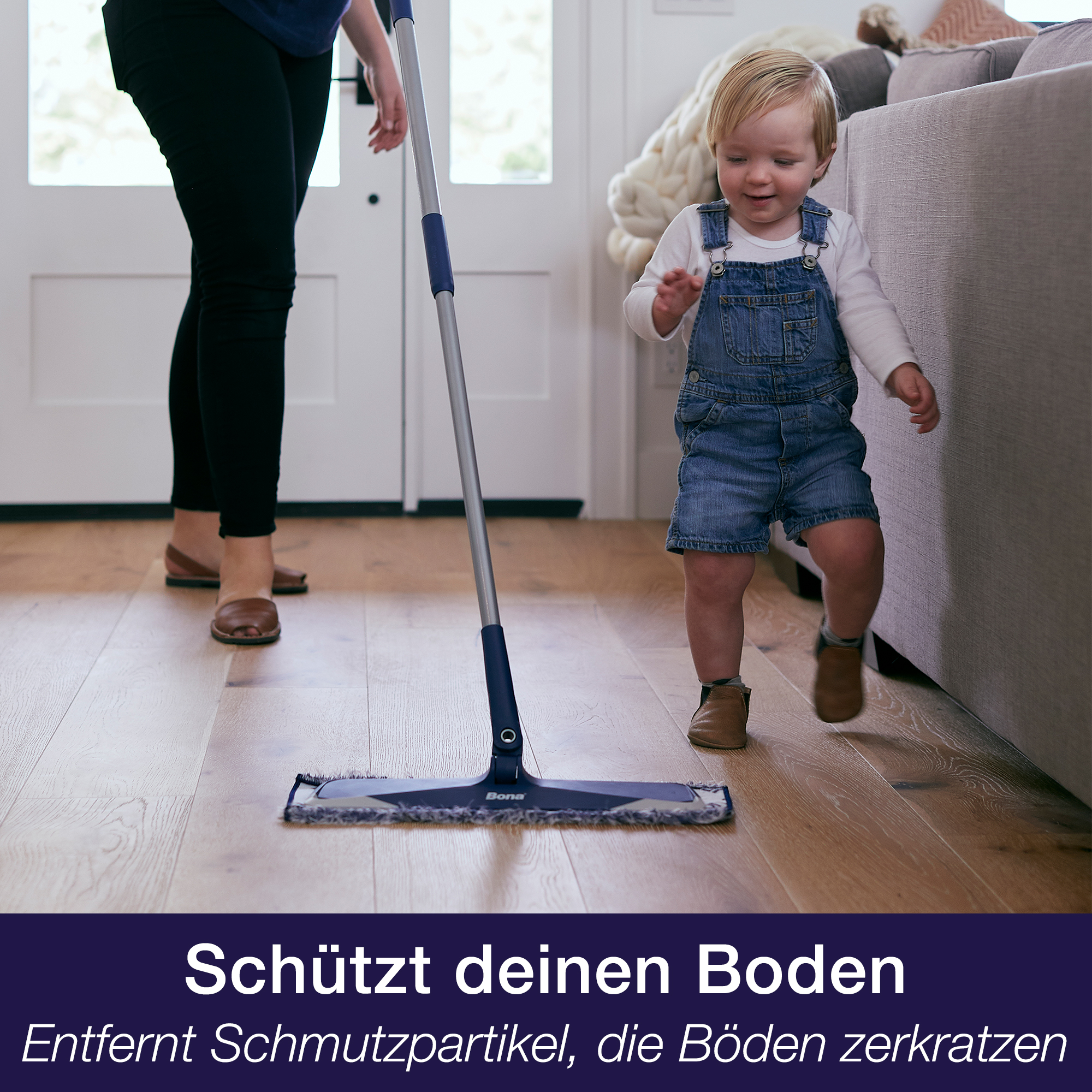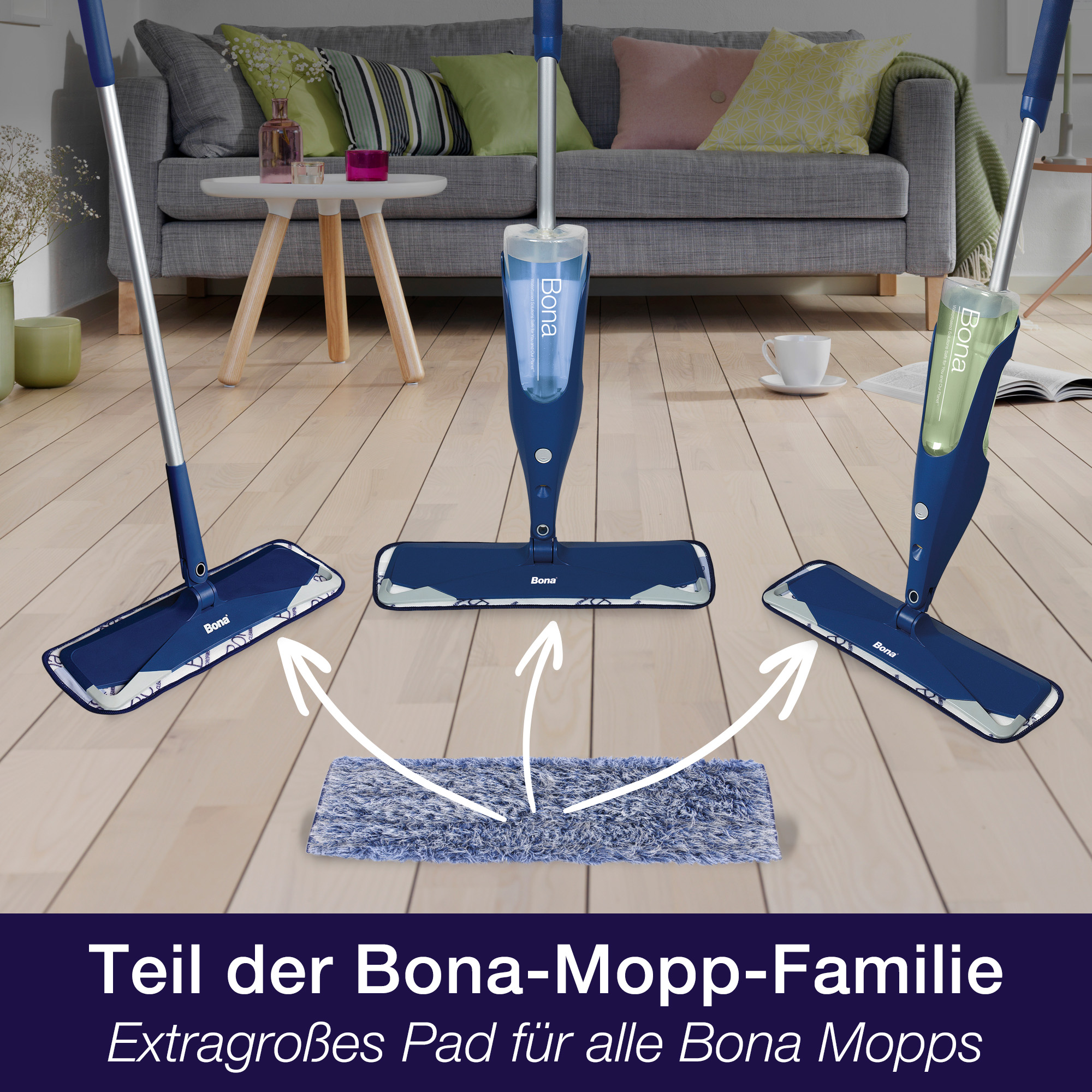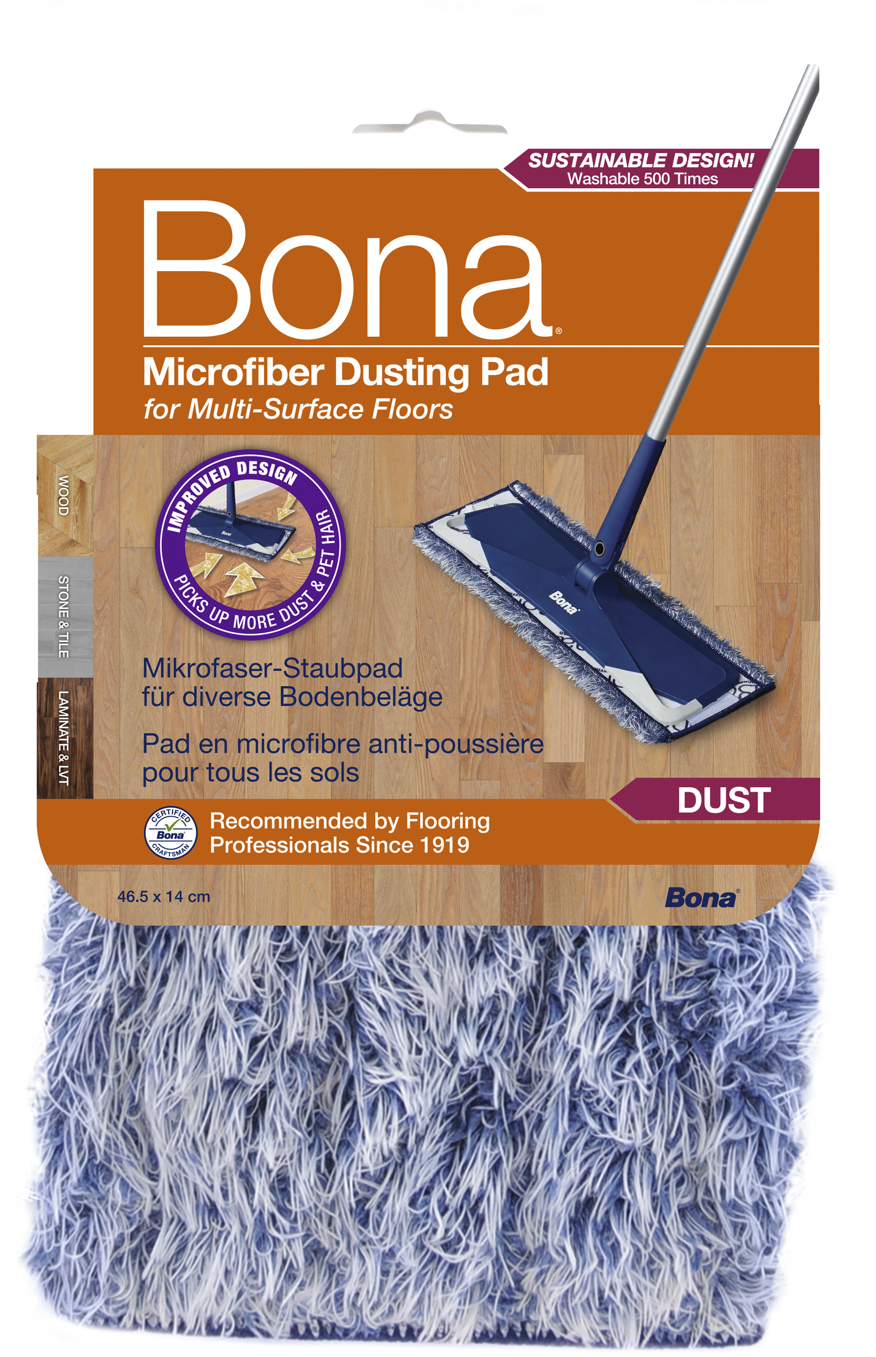 Das Bona Mikrofaser-Staubpad ist ein flauschiges Pad, das Staub, Schmutz und Tierhaare elektrostatisch anzieht und festhält. Es kann täglich verwendet werden, um Kratzern am Boden vorzubeugen.
