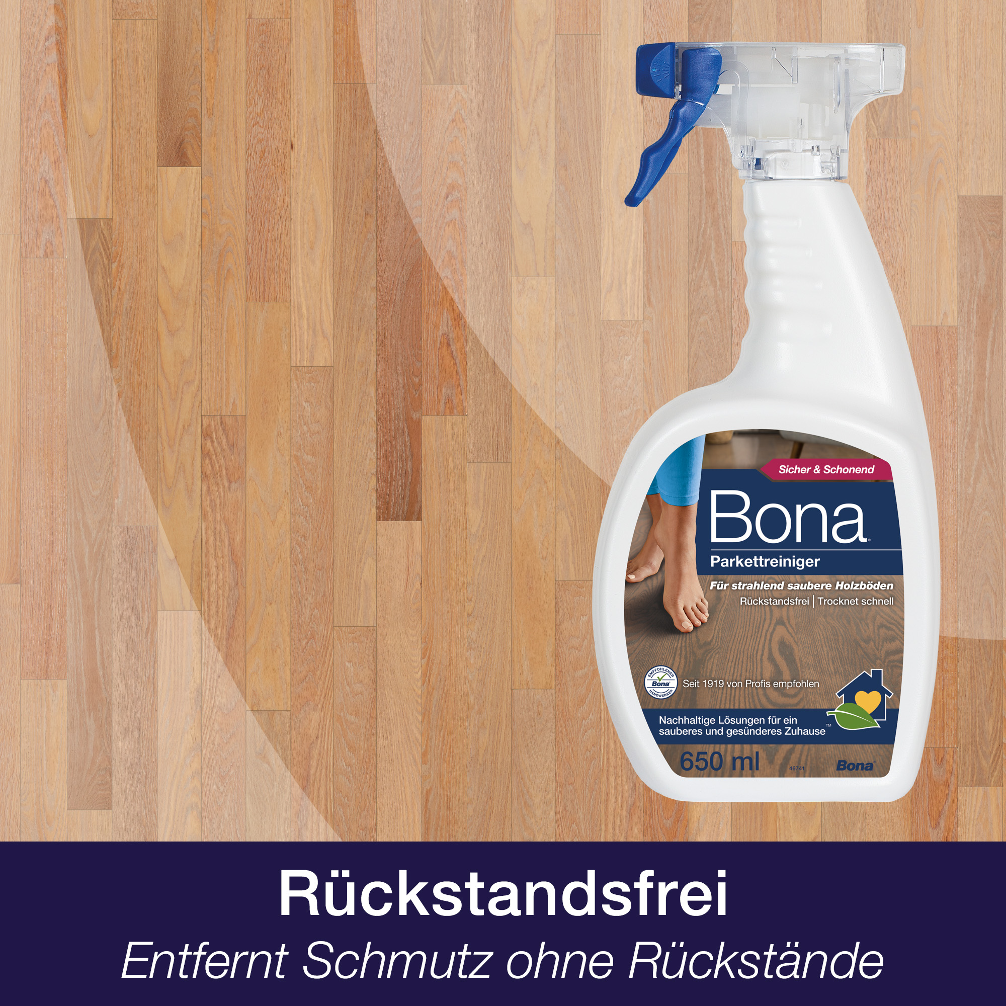 Bona Parkettreiniger wurde speziell für die regelmäßige Reinigung lackierter oder gewachster Parkettböden entwickelt.