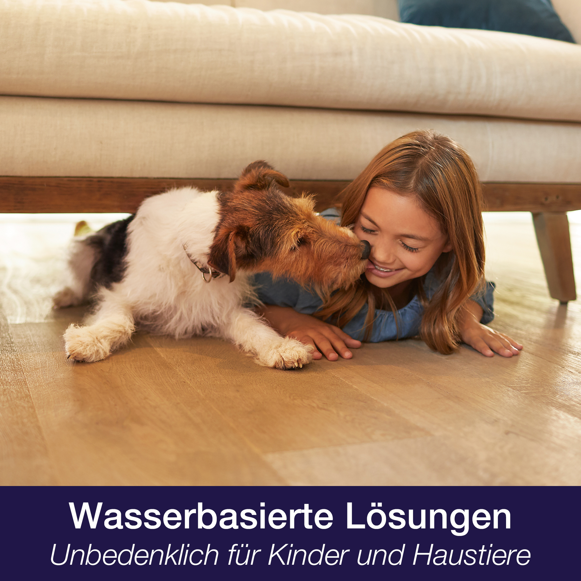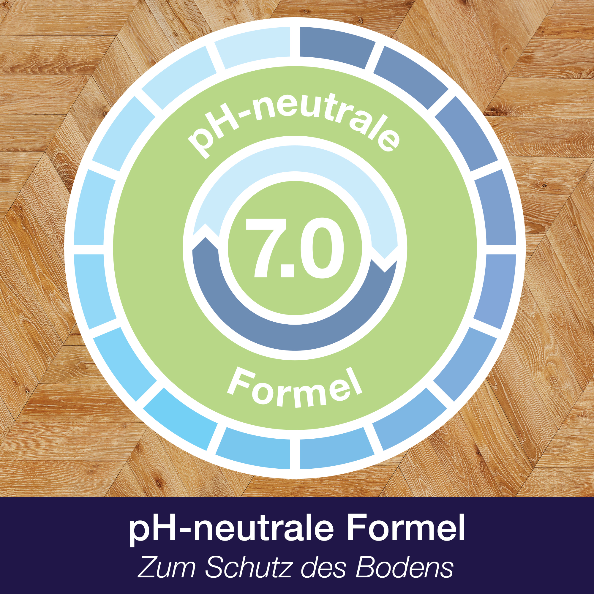 Die spezielle „Streifenfrei“-Formel hinterlässt keine klebrigen Rückstände und beseitigt selbst gröbsten Schmutz und starke