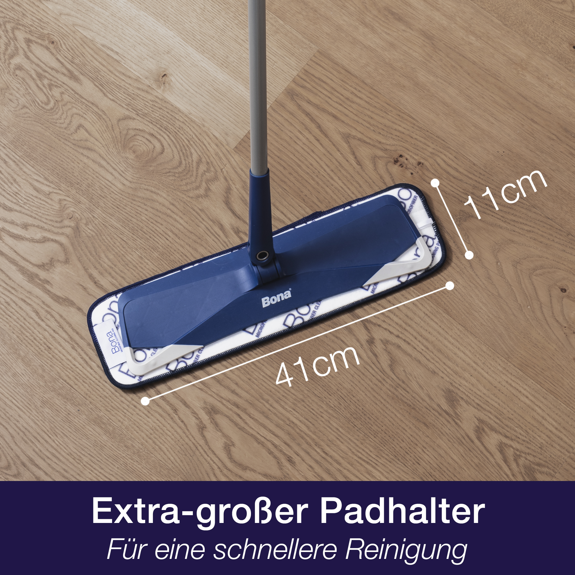Der Bona Premium Teleskop-Mopp mit einem langlebigen, ausziehbaren Moppstiel und extra großem Moppkopf bietet eine einfache und schnelle Möglichkeit, deine Böden zu reinigen.